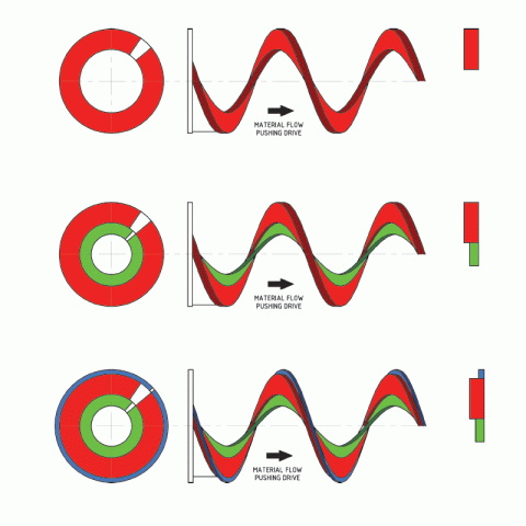 When the screw shaft rotates, the material moves forward along the trough bottom of the conveyor under the push of the screw blade. The reason why the material does not rotate with the blade is that it is subject to its weight and the friction resistance generated by the trough wall. Therefore, the transport of materials in the conveyor is completely a slip movement. In order to make the screw shaft in a more favorable tension state, we usually place the drive device and the discharge port at the same end of the conveyor, and the feed port at another end. Besides, the spiral shaft is equipped with a thrust bearing at the end of the material movement direction, and when the machine body is long, we will add a hanger bearing on the equipment.