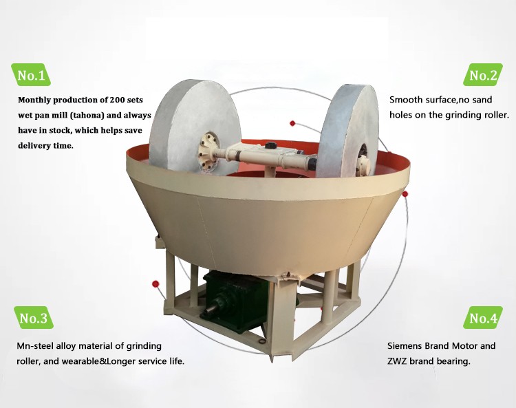 Wet Pan Mill i used for gold ore grinding,especially for small size rock gold,which can grind gold ore into 100-150mesh.Many customers would like to import wet pan mill because of low cost and high productivity. The most important thing is that using wet pan mill could get pure gold directly,which is suitable for people who want to start from small scale business.