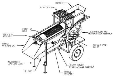 The gold trommel screen mainly comprises a motor, a reducer, a roller device, a machine frame, a sealing cover, and an inlet and outlet. It normally works together with a sluice box or vibration sluice machine, water pump, gold shaker table, etc, to form a complete alluvial gold wash plant.
