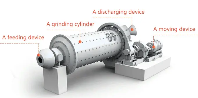 The machine is composed of feeding part, discharging part, turning part and driving part (reducer, small driving gear, electric motor and electric control). The quill shaft adopts cast steel part and the liner is detachable. The turning gearwheel adopts casting hobbing process and the drum is equipped with wear-resistant liner, which has good wear-resistance. The machine is with stable and reliable working condition. Moreover, according to different materials and discharging methods, there are dry ball mills and wet ball mills for choice.