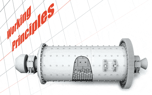 The ball mill is a horizontal rotating device transmitted by the outer gear. The materials are transferred to the grinding chamber through the quill shaft uniformly. There are ladder liner and ripple liner and different specifications of steel balls in the chamber. The centrifugal force caused by rotation of barrel brings the steel balls to a certain height and impact and grind the materials. The ground materials are discharged through the discharging board thus the grinding process is finished.